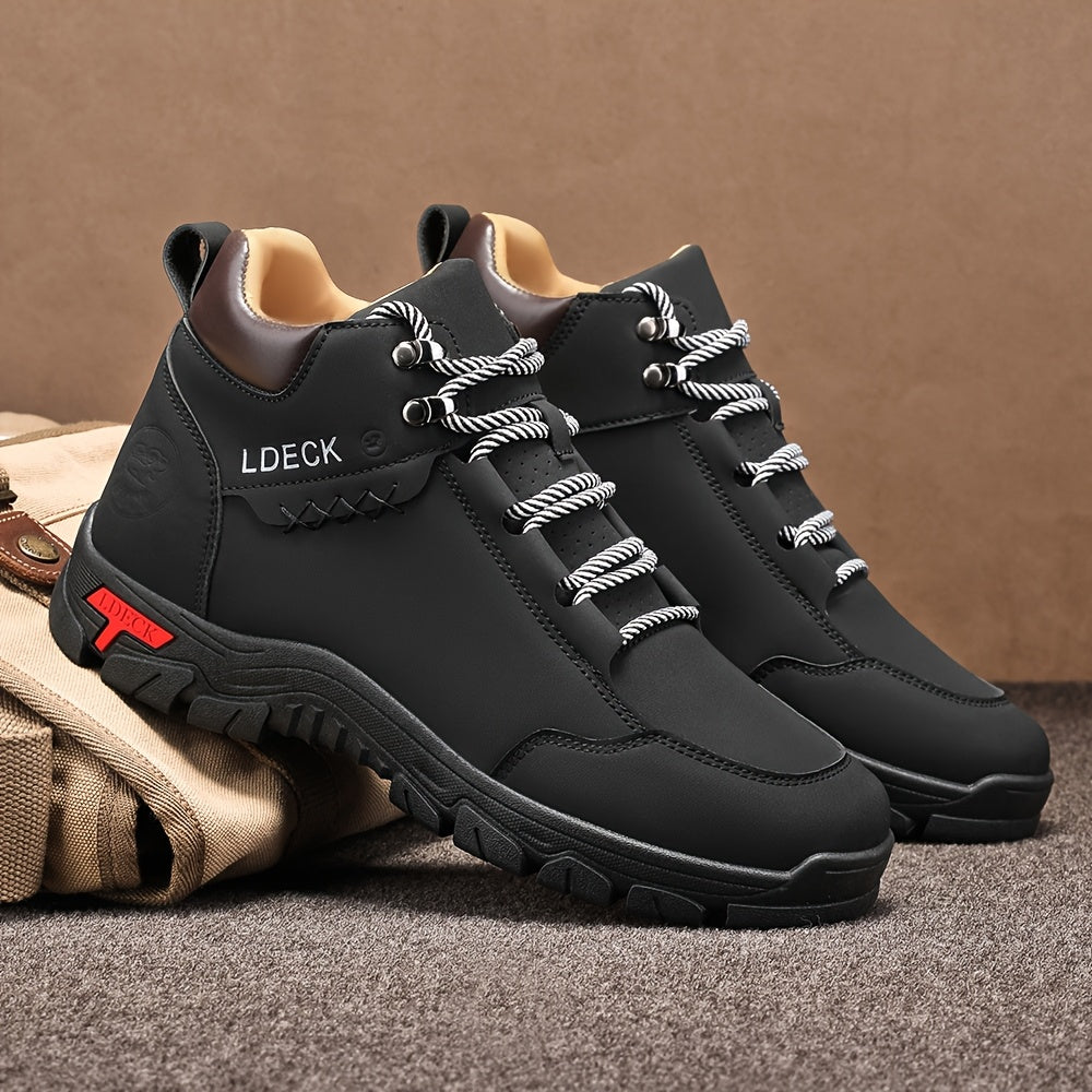 Men's & Unisex Lace-Up Boots - Non-Slip Cushioned insoles, High Quality PU Upper & PVC Outsole - All-Terrain Traction for Hiking, Training, Everyday - Brown Boots - Durable Work & Casual Shoes, Hiking Footwear, Stylish Laceup