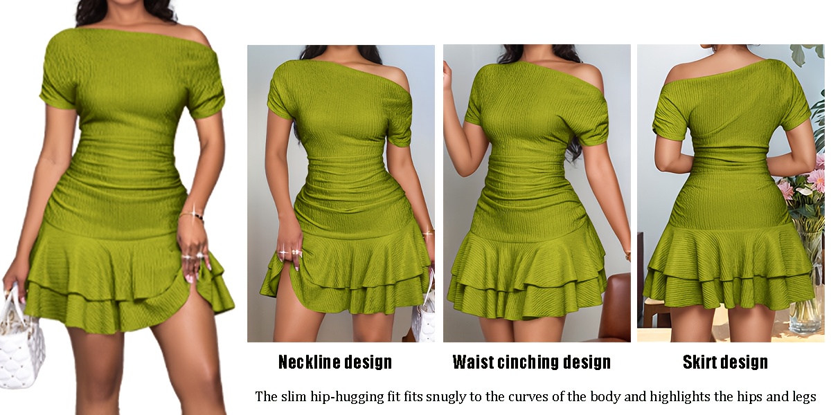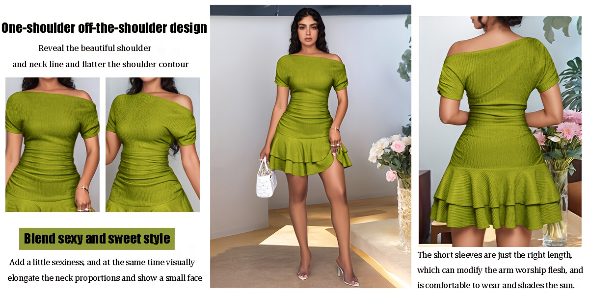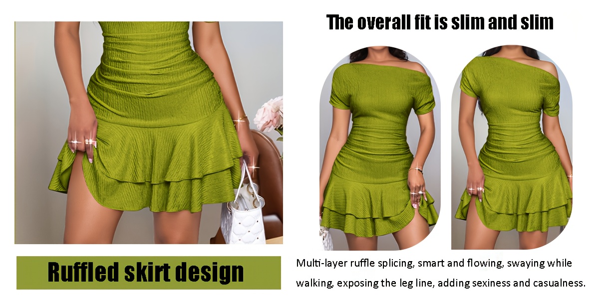's Navy Blue Single Shoulder Asymmetrical A-Line Dress with Short Sleeves & Ruffled Hem - Greek Goddess Style Short Dress for Beach Weddings, Parties, Summer Events - Machine Washable Elegant Resort Wear