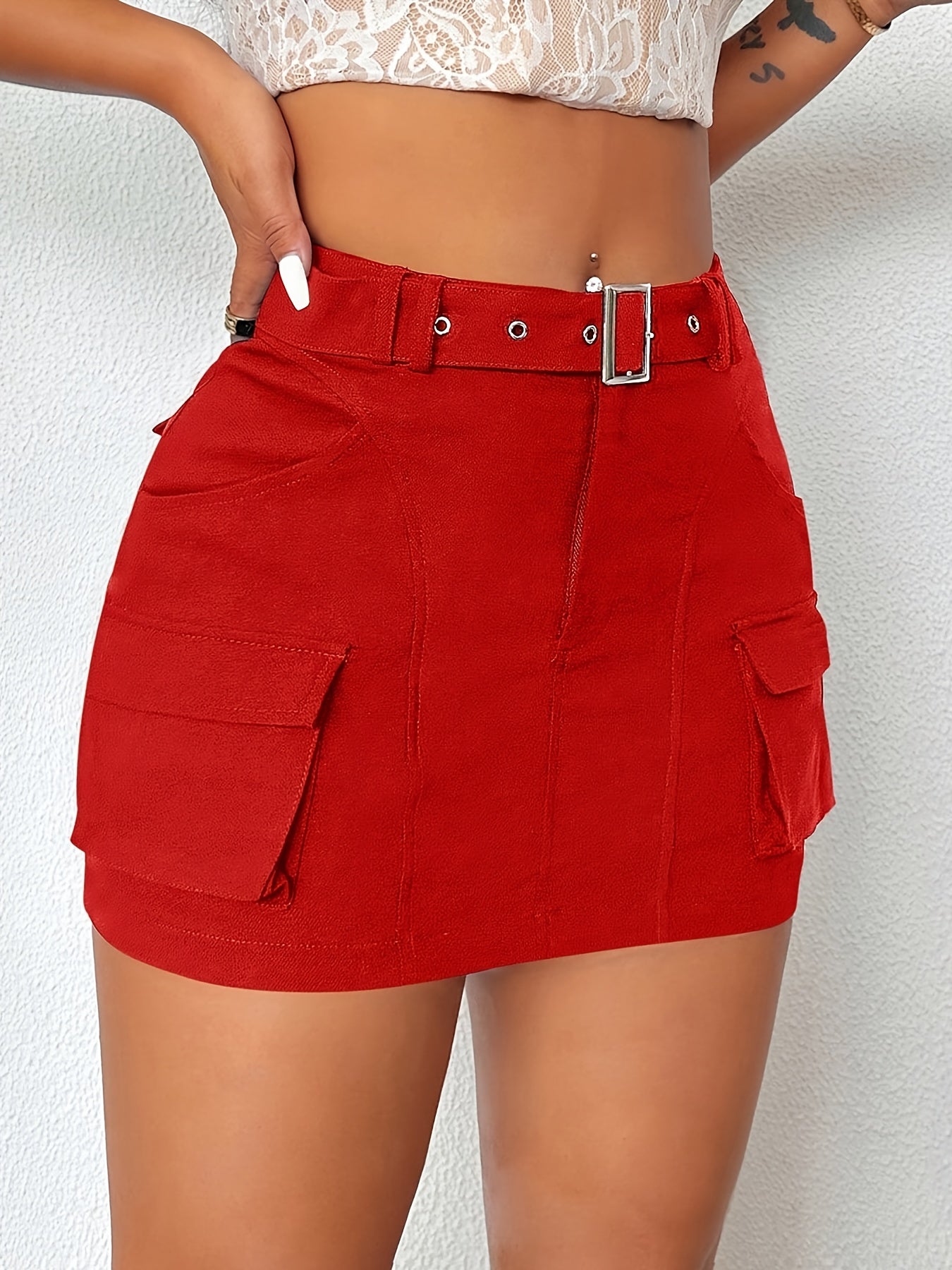 Women'S Black High-Waisted Mini Skirt with Pockets, Adjustable Waistband, and Button Closure - Versatile All-Season Fashion Accessory, Skirt